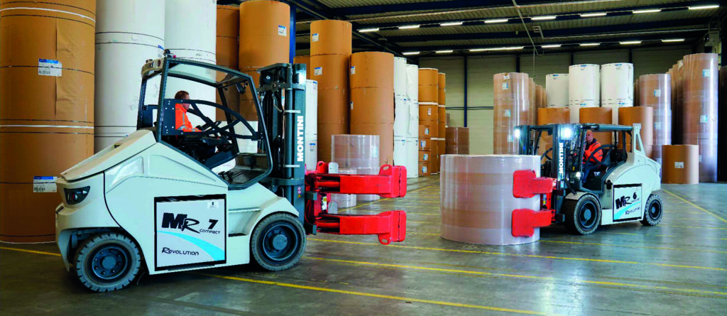 Per rispondere alle varie configurazioni degli impianti cartari, i carrelli del costruttore di Lugo – che da quest’anno è passato da snc a società di capitali – possono essere equipaggiati con montanti Duplex o Triplex, tutti a visibilità totale e con alzata libera completa, interamente progettati e realizzati dall’azienda. La disponibilità di batterie in tecnologia piombo-acido o agli ioni di litio, in diverse capacità, consente di adeguare l’autonomia operativa in funzione dei cicli di lavoro specifici. La batteria, suddivisa in due moduli laterali, è facilmente estraibile anche senza stazioni fisse di cambio grazie a un carrello secondario o a un transpallet da 2 tonnellate.