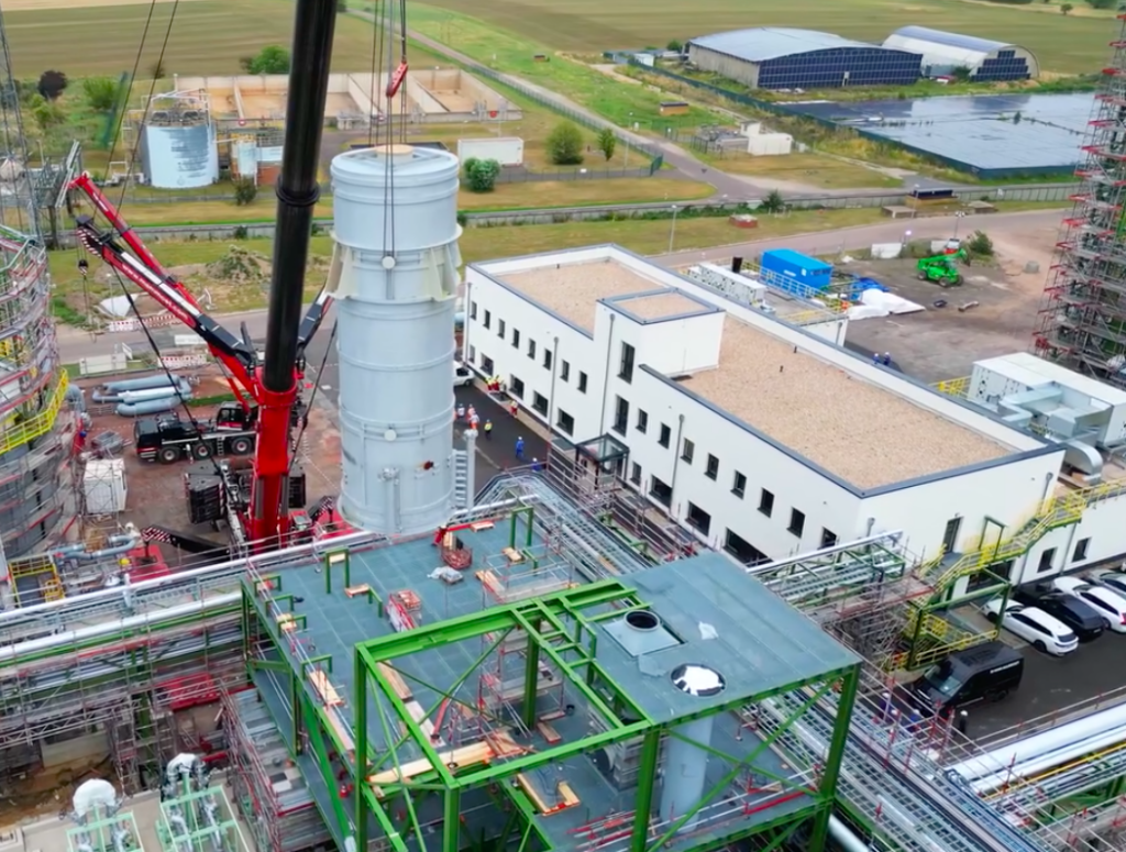 Un cantiere complesso per un impianto complesso La costruzione del nuovo impianto richiedeva lo spostamento e l’installazione di oltre 500 componenti tra cui elementi di grandi dimensioni e pesanti come il reattore, le colonne, i silos, i serbatoi, gli scambiatori di calore, i forni e numerose unità più piccole e delicate come pompe, sistemi skid e altre attrezzature speciali. L’installazione di dodici silos rappresentava una sfida logistica particolare, in quanto dovevano essere collocati e allacciati subito dopo la consegna per liberare lo spazio destinato all’arrivo di altri componenti.