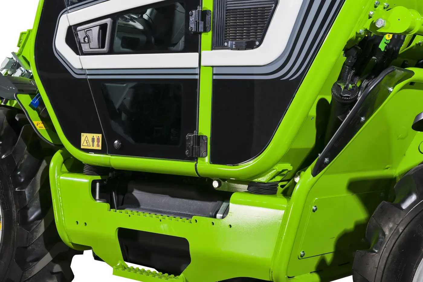 Sul piano strutturale, il P72.10 CS TOP adotta un telaio compatto ma rinforzato, progettato per garantire elevata rigidità torsionale e resistenza alle sollecitazioni tipiche dei cantieri heavy-duty. Il sistema di livellamento laterale consente di compensare pendenze fino all’8%, migliorando la stabilità nelle operazioni di sollevamento su terreni irregolari. La zattera ZM3, più robusta rispetto a quelle impiegate sulle gamme a portata inferiore, permette l’utilizzo di attrezzature pesanti e accessori di grandi dimensioni, ampliando il campo applicativo della macchina.