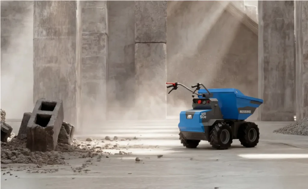 In questa direzione si inserisce la WB50e, carriola elettrica progettata per operare in ambienti confinati, con una larghezza contenuta in 850 mm e una capacità di carico di 500 kg. La trazione articolata 4×4 e la possibilità di lavorare su pendenze fino al 25% ne permettono l’impiego anche in contesti irregolari, mentre la propulsione elettrica con batteria a 24V (autonomia dichiarata fino a otto ore) la rende compatibile con utilizzi indoor o in aree sensibili sotto il profilo emissivo e acustico. La sicurezza è garantita dal sistema frenante “fail-safe” con dispositivo “uomo morto”, che arresta immediatamente la macchina in caso di emergenza. Inoltre, la WB50e è dotata di punto di snodo centrale con perno bloccabile per un trasporto semplice e sicuro.