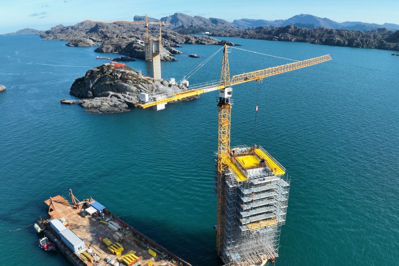 Nella Norvegia occidentale sta prendendo forma il ponte Ytre Steinsund, un importante progetto infrastrutturale che entro la fine del 2026 migliorerà l’accessibilità della regione intorno a Hardbakke, sul Sognefjord. Per la costruzione del ponte, i responsabili si stanno affidando a quattro gru a torre Liebherr della serie EC-H, chiamate ad adattarsi con flessibilità alle esigenze specifiche di un sito caratterizzato da condizioni meteorologiche spesso avverse.