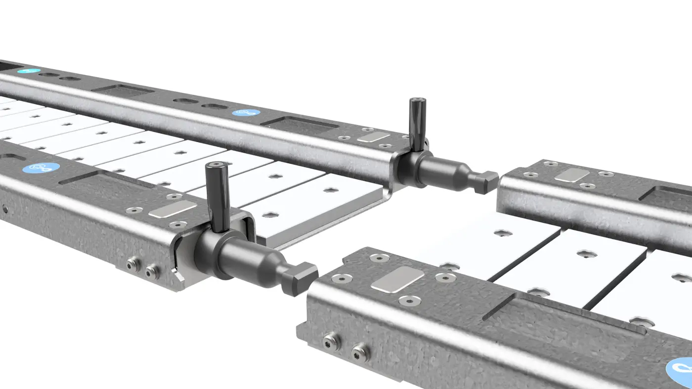 L’LHS4-2 utilizza un semplice movimento di rotazione manuale per collegare il cingolo al posto del giunto a bulloni utilizzato per il precedente sistema di skidding. La lunghezza delle guide è aumentata da 955 mm a 1433 mm. Queste due caratteristiche consentono di montare e smontare il sistema in modo più semplice e rapido. Enerpac ha inoltre sviluppato nuovi ganci di movimentazione delle guide di skidding per un montaggio più ergonomico. Per facilitare il trasporto e lo stoccaggio, l’LHS4-2 è fornito in un telaio di trasporto in acciaio, che consente di trasportare e stoccare l’intero sistema in modo sicuro.